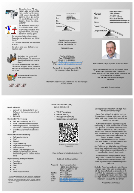 Erstellung Infomaterial - Ewald Langenbacher - HEBEL-Dienstleistungen